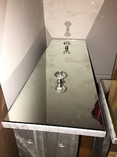 You see, the first time I went to have my glass cut, I only got enough glass for one dresser because I wanted to make sure the measurements were accurate before I purchased more. The guy that did that glass for me used 3 sheets of glass, totaling around $48